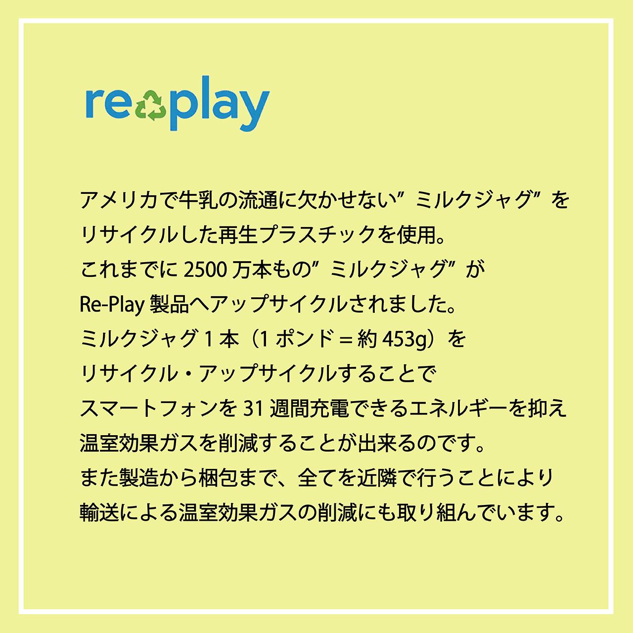 Re-Playの食器は環境保全を考えた地球にやさしいエコ商品であり、すべて再生プラスチックのリサイクル商品です。