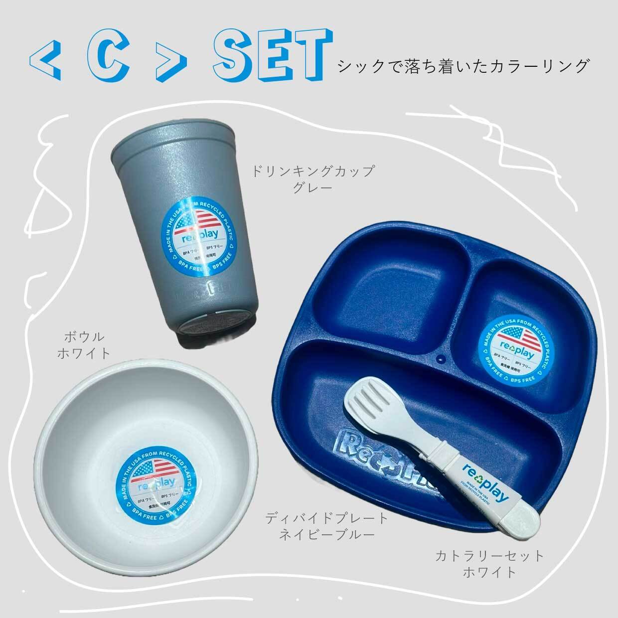 【BLUE STORE限定 キッズ食器SPECIAL4点セット】コットンバッグ付き| 再生プラ|食器セット|ギフト|出産祝い|Re-Play リプレイ 公式輸入代理店